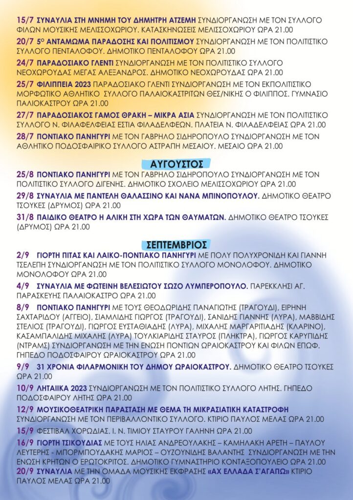 Με αγαπημένους καλλιτέχνες και πλούσιο πρόγραμμα καλλιτεχνικών εκδηλώσεων θα πραγματοποιηθεί και φέτος για τέταρτη χρονιά το «Πολιτιστικό Καλοκαίρι 2023» στον Δήμο Ωραιοκάστρου, το μεγάλο πολιτιστικό γεγονός του καλοκαιριού.