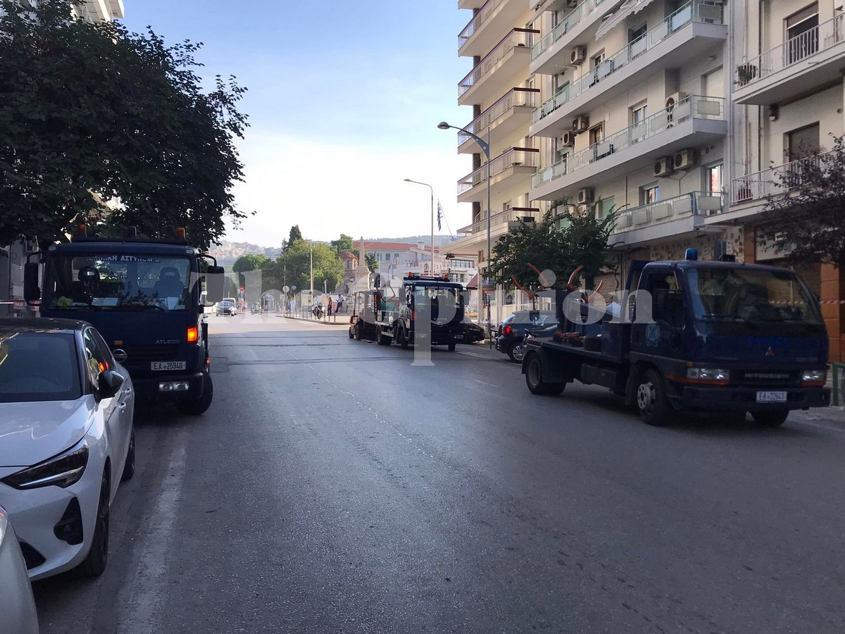 Γερανοί της Τροχαίας από το πρωί τις τελευταίες ημέρες σηκώνουν τα παρανόμως σταθμευμένα οχήματα.