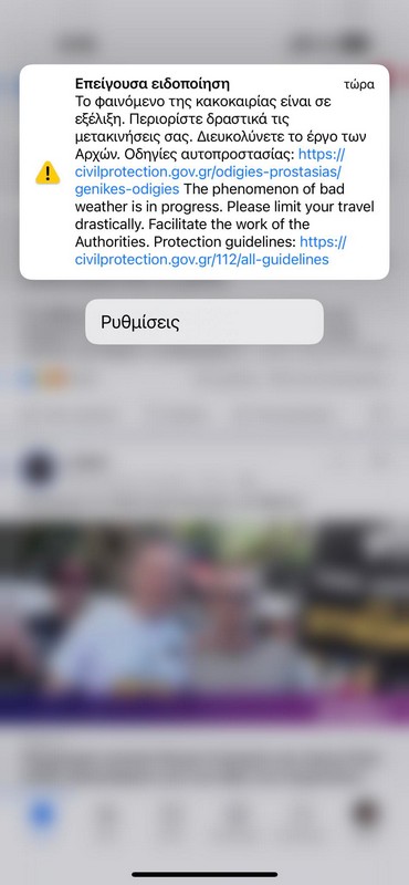 Το μήνυμα της πολιτικής προστασίας ενημέρωσε τους κατοίκους της Θεσσαλονίκης ότι η κακοκαιρία βρίσκεται σε εξέλιξη.