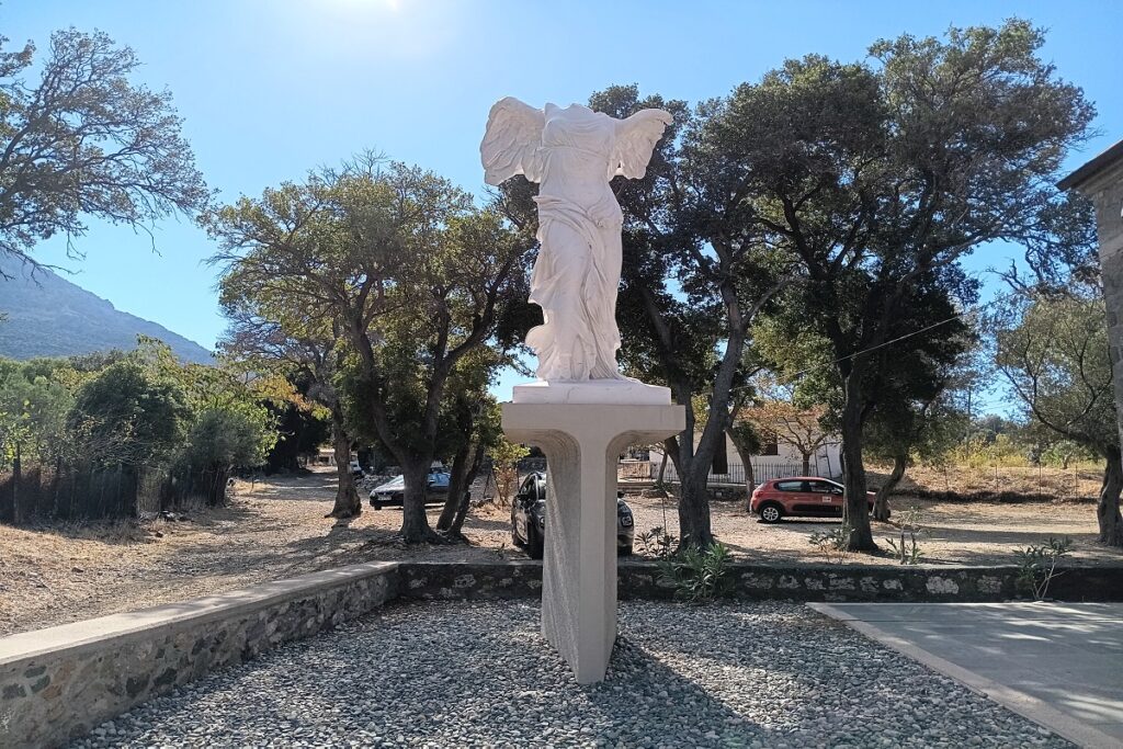 Το μαρμάρινο ακριβές αντίγραφο της φτερωτής Νίκης της Σαμοθράκης, βρίσκεται στον εξωτερικό χώρο του αρχαιολογικού μουσείου. Το άγαλμα αποτελεί τμήμα ενός μεγαλύτερου μνημείου, όπου η Νίκη εικονιζόταν πάνω στην πλώρη μιας τετρήρους, πολεμικού πλοίου της εποχής.
