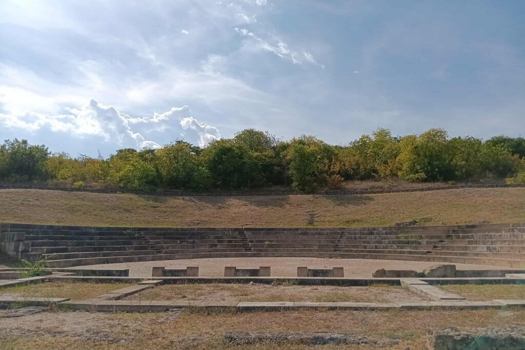 Το αρχαίο θέατρο εντοπίστηκε το 1992 και ανασκάφηκε σταδιακά κατά τα έτη 1993 -1995, 1998, 2007-8 και 2011-13. Πρόκειται για ένα ιδιόμορφο συνδυασμό ελληνικού και ρωμαϊκού θεάτρου και υπάρχουν στοιχεία για τρεις οικοδομικές φάσεις του μνημείου. Η παλαιότερη τοποθετείται στην ύστερη κλασική ή πρώιμη ελληνιστική εποχή. Μετά τα μέσα του 2ου αιώνα π.Χ. οικοδομείται ένα νέο θέατρο με λίθινη σκηνή, πιθανόν μικρότερο από το αρχικό.