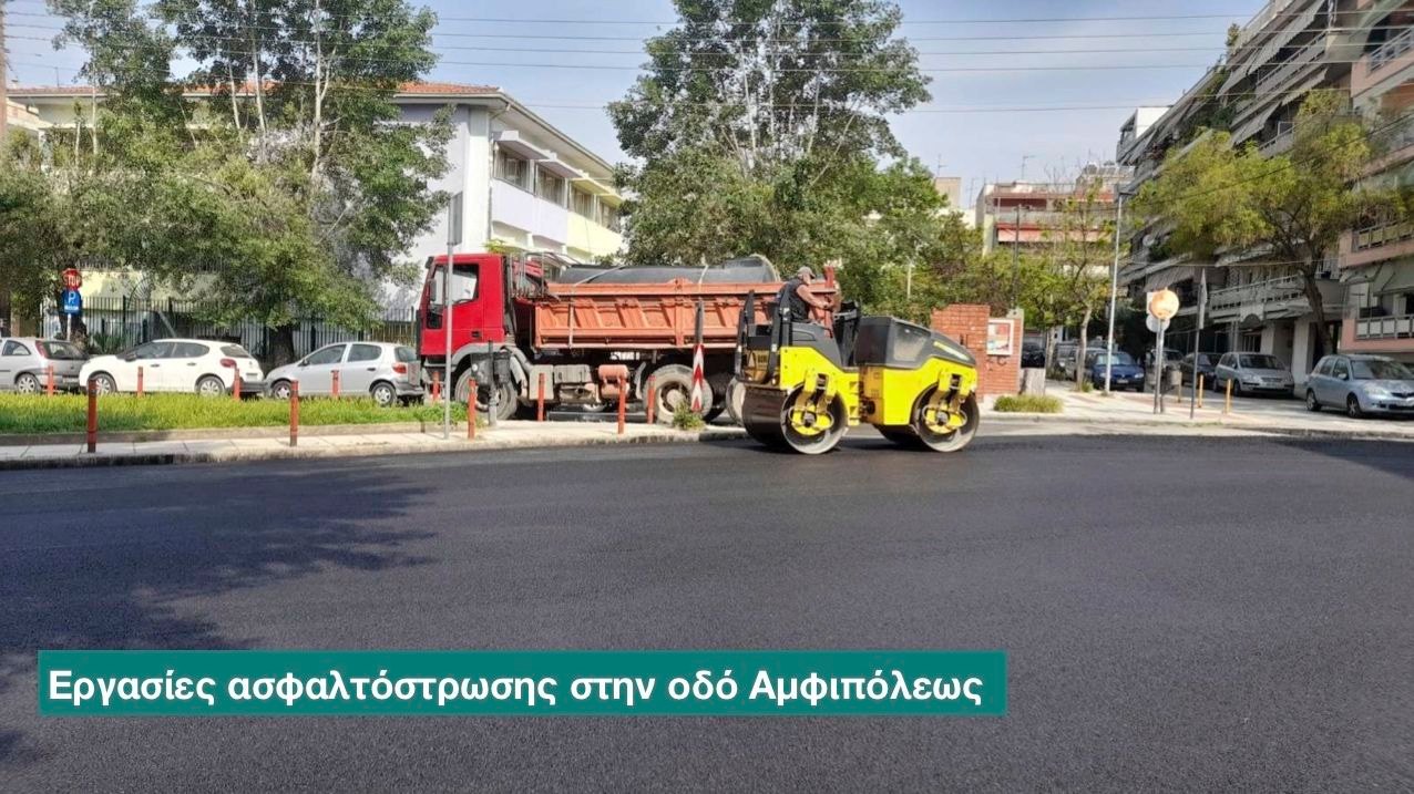 Από το πρωί εξελίσσονται εργασίες ασφαλτόστρωσης στην οδό Αμφιπόλεως, στην περιοχή της Δ΄ Δημοτικής Κοινότητας. Η παρέμβαση στην οδό Αμφιπόλεως υλοποιείται σε συνέχεια αντίστοιχων εργασιών που εκτελέστηκαν στην οδό Απόλλωνος, που χτες βράδυ δόθηκε στην κυκλοφορία με νέα άσφαλτο και νέα εικόνα.