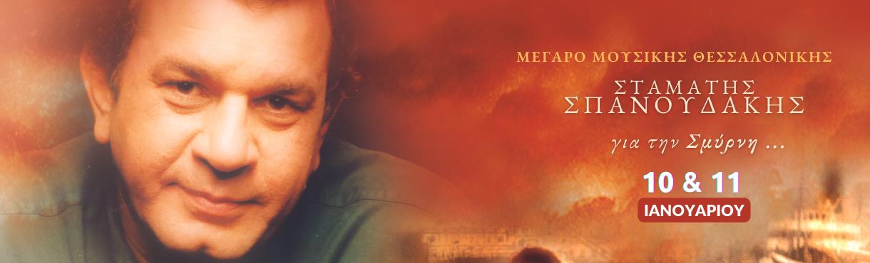Στο Μέγαρο Μουσικής Θεσσαλονίκης, θα βρεθεί απόψε ο Σταμάτης Σπανουδάκης θα πραγματοποιήσει δύο μεγάλες συναυλίες αφιερωμένες στα 100 χρόνια από τη συμπλήρωση της Μικρασιατικής καταστροφής, με τίτλο: «Για τη Σμύρνη».