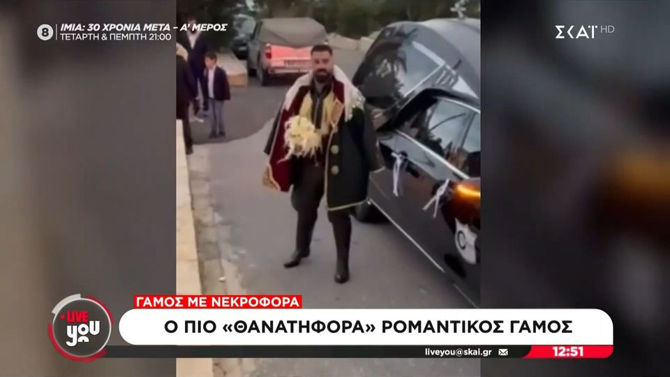 Μία πρωτόγνωρη κίνηση έκανε γαμπρός στο Ηράκλειο της Κρήτης, που εμφανίστηκε στον γάμο του με μαύρη νεκροφόρα φορώντας μία παραδοσιακή ενδυμασία και κρατώντας ένα μπουκέτο λουλούδια.