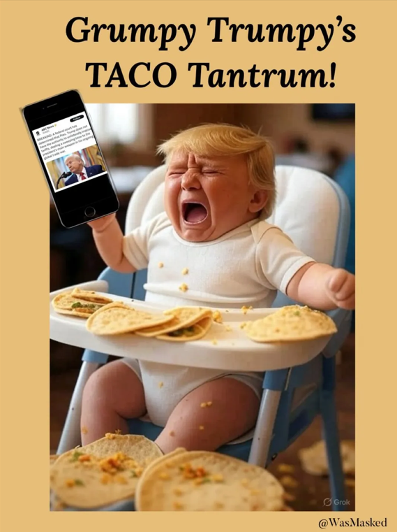 Το «TACO Τραμπ» έχει γίνει πολύ δημοφιλής στα μέσα κοινωνικής δικτύωσης, αφού πάντα ο υποχωρεί από τους δασμούς.