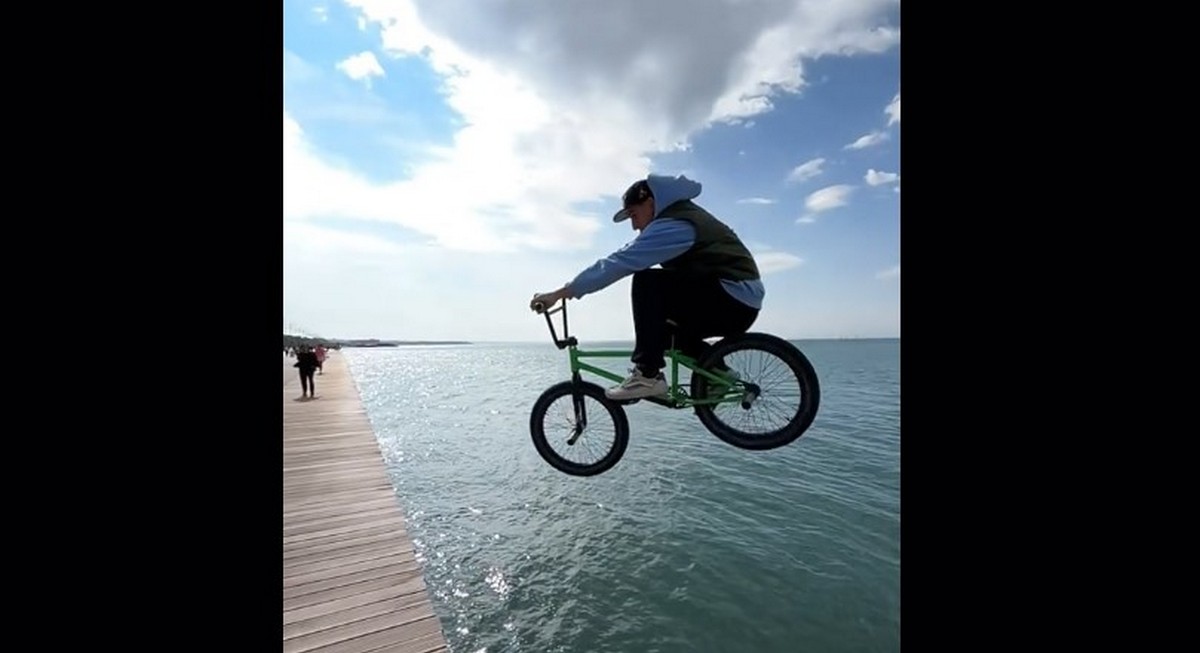 Το συγκεκριμένο βίντεο, δείχνει τον ποδηλάτη να παίρνει φόρα από την εξέδρα, στο πλακόστρωτο της Νέας Παραλίας και να κάνει το εντυπωσιακό άλμα, «πηδώντας» πάνω από τον Θερμαΐκό για να προσγειωθεί στο έδαφος από την… άλλη πλευρά. Το εν λόγω βίντεο ήδη έχει κάνει «θραύση», μετρώντας πολλά likes αλλά και views.