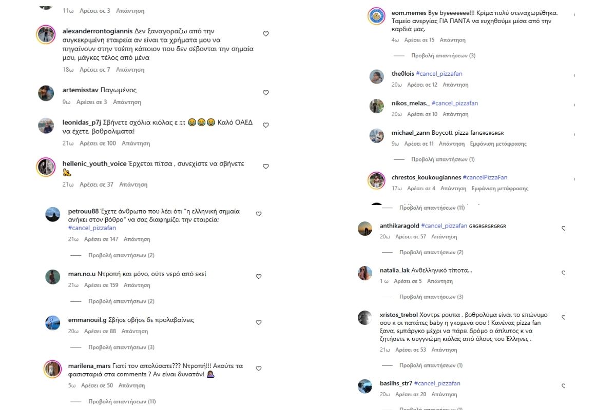 Η #pizzafan έπραξε σωστά διαχωρίζοντας τις θέσεις της από τις ανθελληνικες θέσεις του εν λόγω ατόμου.Λογικη η γκρίνια από άτομα που έχουν μάθει να λοιδορούν την Ελλάδα και τα εθνικά μας σύμβολα χωρίς καμία συνέπεια. Προσοχή τώρα στις οργανωμένες φασιστικές επιθέσεις του Ρουβίκωνα